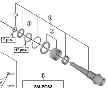 Shimano Spares PD-R9100 pedal axle assembly; left hand
