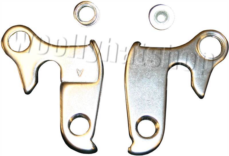 Derailleur hangers were developed to break off or bend in a crash before your frame does. It is much easier to replace a hanger than repair the frame. Many Manufacturers use and share the same style - we have attempted to make it easier by listing the frames that we know this hanger attaches to. Colour : Aluminium. Picture is of the exact hanger - if yours does not match then it will not fit your frame. We suggest you offer it up to the picture to match your hanger. We have taken pictures of the front and back to ease confusion. If this is not the hanger you are looking for please check our other listings as we have many other styles. Compatible frames that we are aware of - Voodoo.